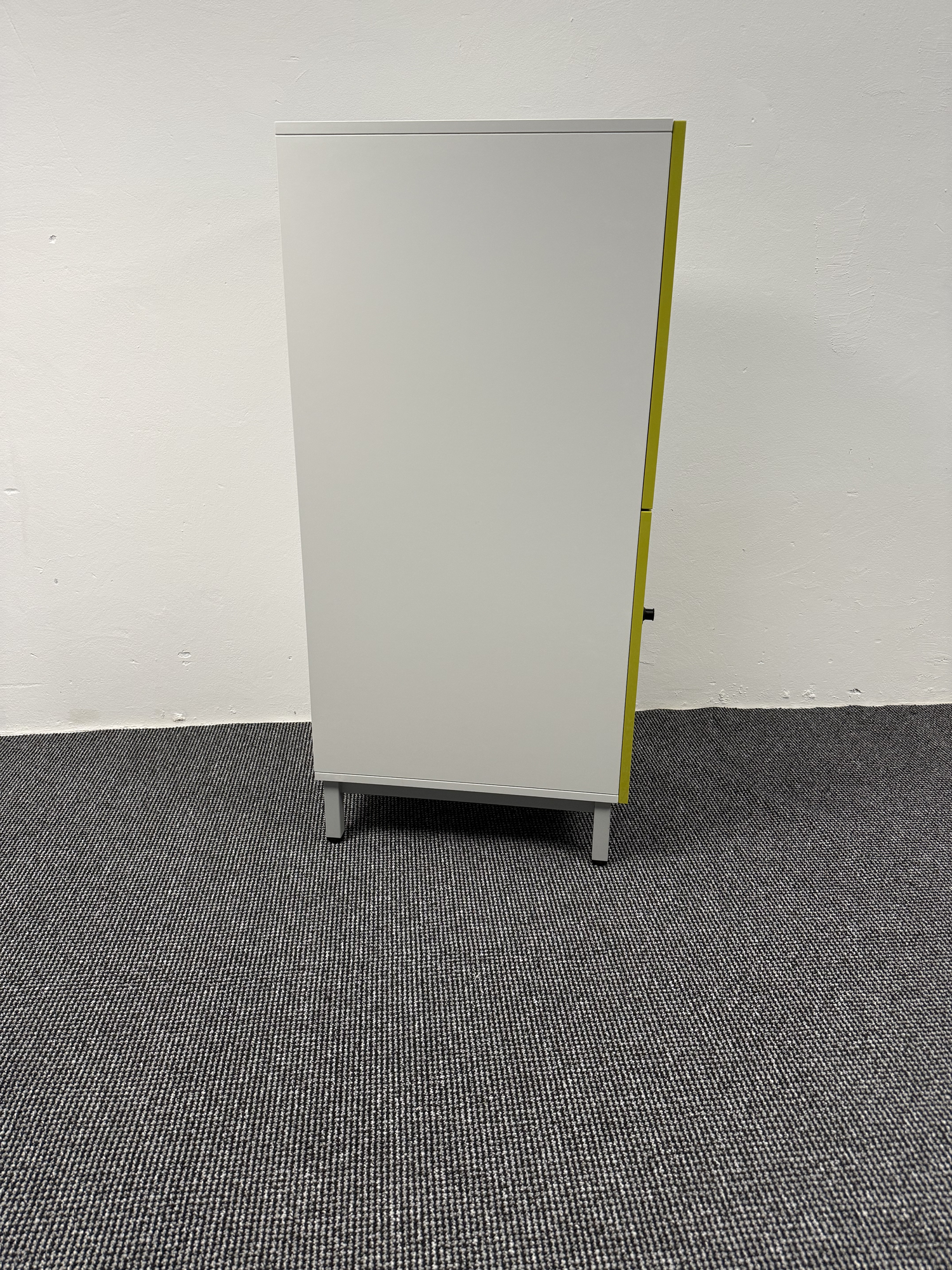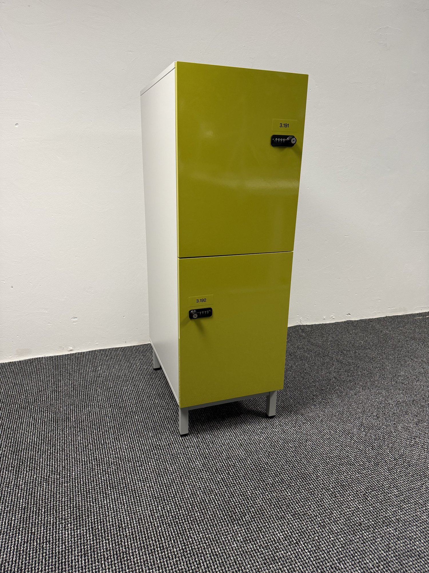 Dieser kompakte, abschließbare Fächerschrank eignet sich ideal zur sicheren Aufbewahrung persönlicher Gegenstände in professionellen Arbeitsumgebungen. Durch seine platzsparenden Maße ist er besonders geeignet für Büros, Sozialräume, Werkstätten, Bildungseinrichtungen oder Gemeinschaftsbereiche, in denen individuelle Staufächer benötigt werden. Die auffällige Farbgebung erleichtert die Orientierung und sorgt für klare Zuordnung im täglichen Betrieb. • Abschließbarer Fächerschrank mit mehreren Fächern • Maße ca. 40 × 60 × 110 cm (Breite × Tiefe × Höhe) • Farbgebung: Gelb • Abschließbare Fächer für persönliche Gegenstände • Kompakte, stabile Bauweise für den Objektbereich. Der Schrank befindet sich in sehr gutem gebrauchten Zustand und ist voll funktionsfähig. Als Gebrauchtmöbel stellt er eine wirtschaftliche und nachhaltige Lösung dar, insbesondere für Unternehmen und Projektkunden, die funktionale Stauraumlösungen effizient und ressourcenschonend einsetzen möchten.