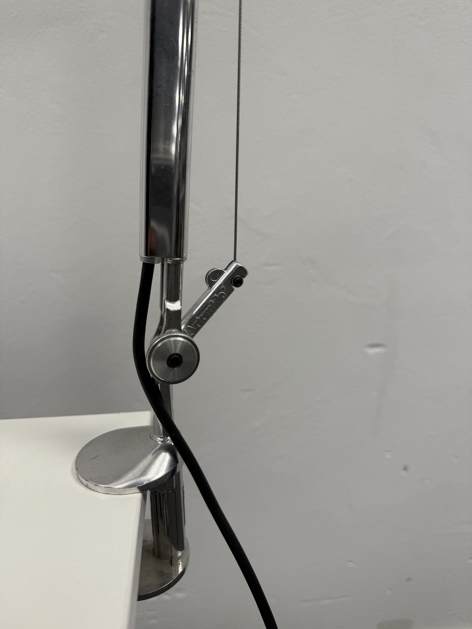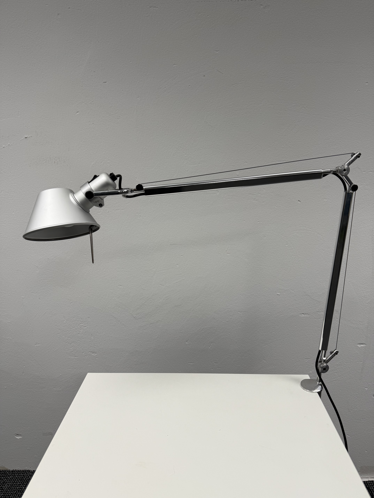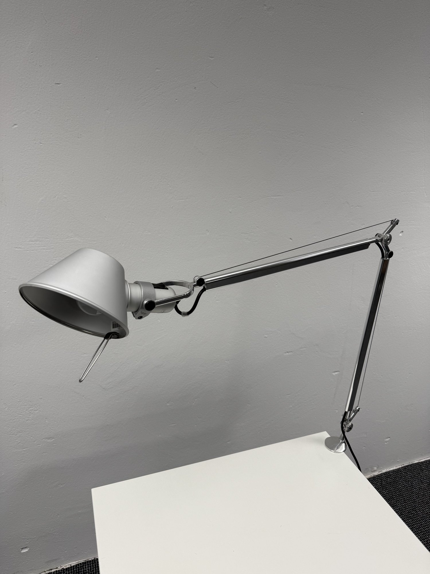 Hochwertige Design-Tischleuchte des Herstellers Artemide, Modell Tolomeo, zur professionellen Arbeitsplatzbeleuchtung in Büros und Projektumgebungen. Die Leuchte eignet sich ideal für Schreibtische, Arbeitsplätze und Besprechungsbereiche und bietet eine flexible, blendfreie Ausleuchtung für konzentriertes Arbeiten. Merkmale: Hersteller Artemide | Modell Tolomeo | Ausführung mit Tischklemme | Verstellbare Gelenkarm-Konstruktion | Metallkonstruktion | Made in Italy | Geeignet für professionelle Büro- und Objektanwendungen. Zustand: Gebraucht, sehr gepflegt aus professionellem Einsatz, technisch voll funktionsfähig und nachhaltig weiterverwendbar.