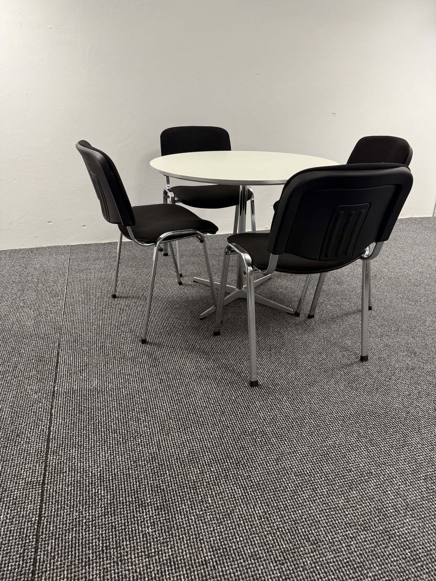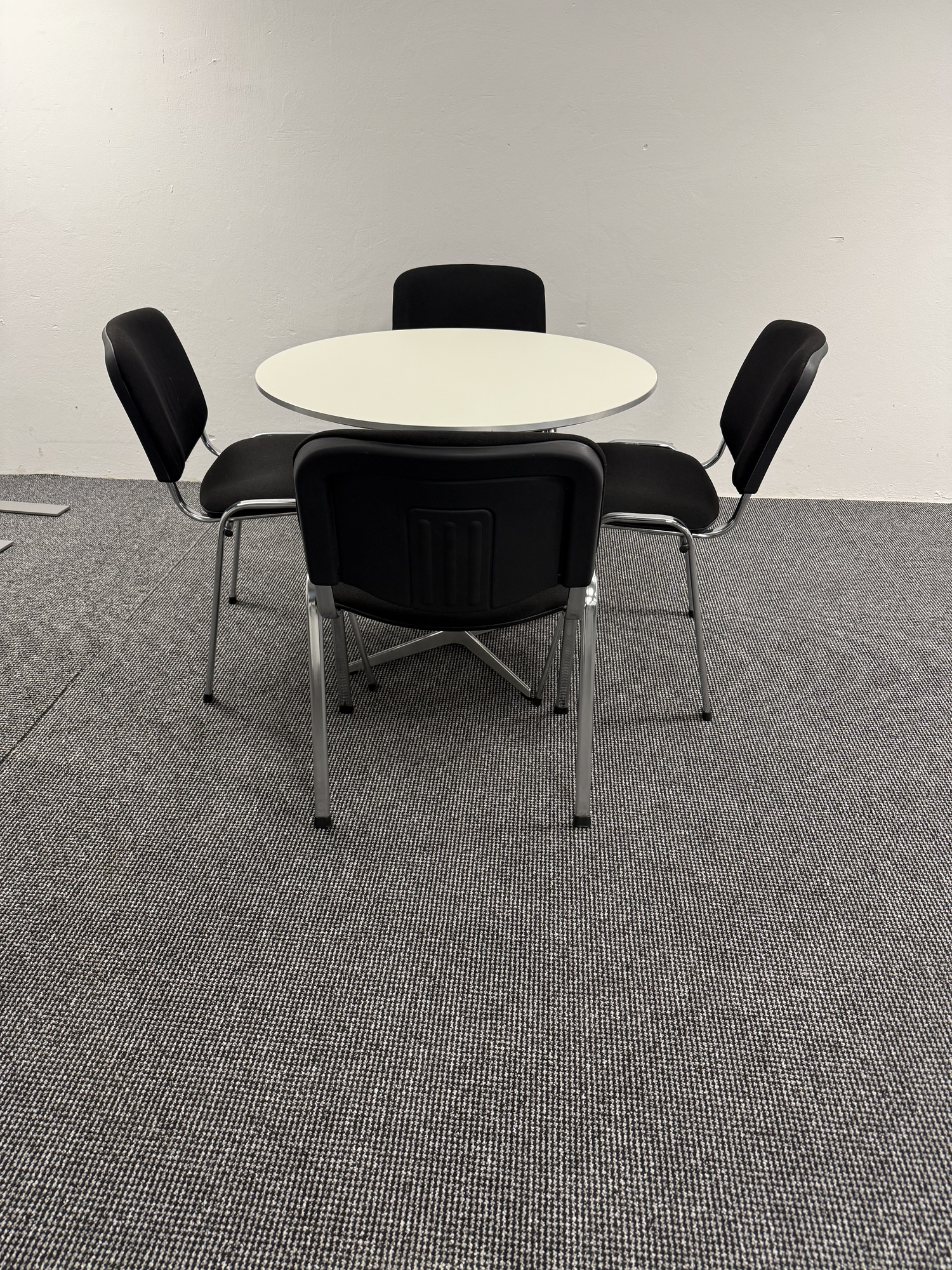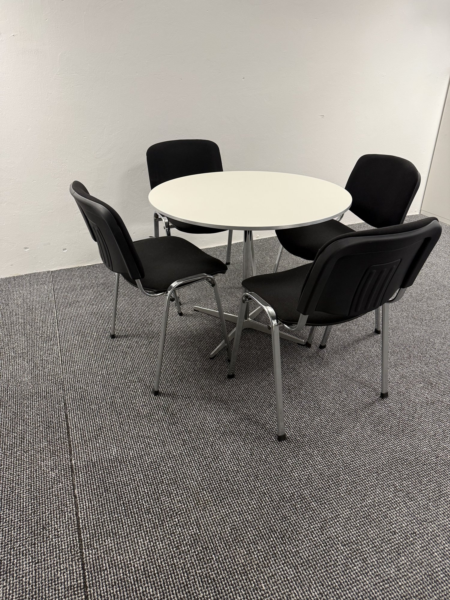 Eleganter runder Tisch von Fritz Hansen aus der Circular-Serie im ikonischen Arne-Jacobsen-Design. Durch den größeren Durchmesser eignet sich dieser Tisch besonders für Meetings mit mehreren Personen, Besprechungsräume, offene Kommunikationszonen oder hochwertige Empfangsbereiche. Das klare, reduzierte Design fügt sich harmonisch in moderne Bürolandschaften ein. • Runde Tischplatte Ø90 cm • Weiße Tischoberfläche in klassischer Ausführung • Stabiles Viersternfuß-Gestell • Robuste, pflegeleichte Oberfläche • Hochwertige Verarbeitung für den professionellen Einsatz • Ideal für Besprechungen, Lounges und Coworking-Spaces. Zustand: Gebraucht, sehr guter Zustand mit üblichen leichten Gebrauchsspuren. Nachhaltige Wiederverwendung eines Designklassikers für den B2B-Einsatz.
