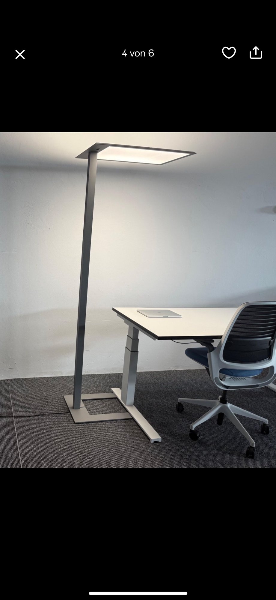 LED-Stehleuchte Leas des Herstellers Lenneper zur effizienten Arbeitsplatzbeleuchtung / Geeignet für Einzel- und Doppelarbeitsplätze / Neutralweißes Licht für konzentriertes Arbeiten / Stabiles Aluminiumgestell / Gleichmäßige Lichtverteilung / Energieeffizient und langlebig / Gebrauchtobjekt in funktionsfähigem Zustand – wirtschaftliche und nachhaltige Lichtlösung für Büroumgebungen