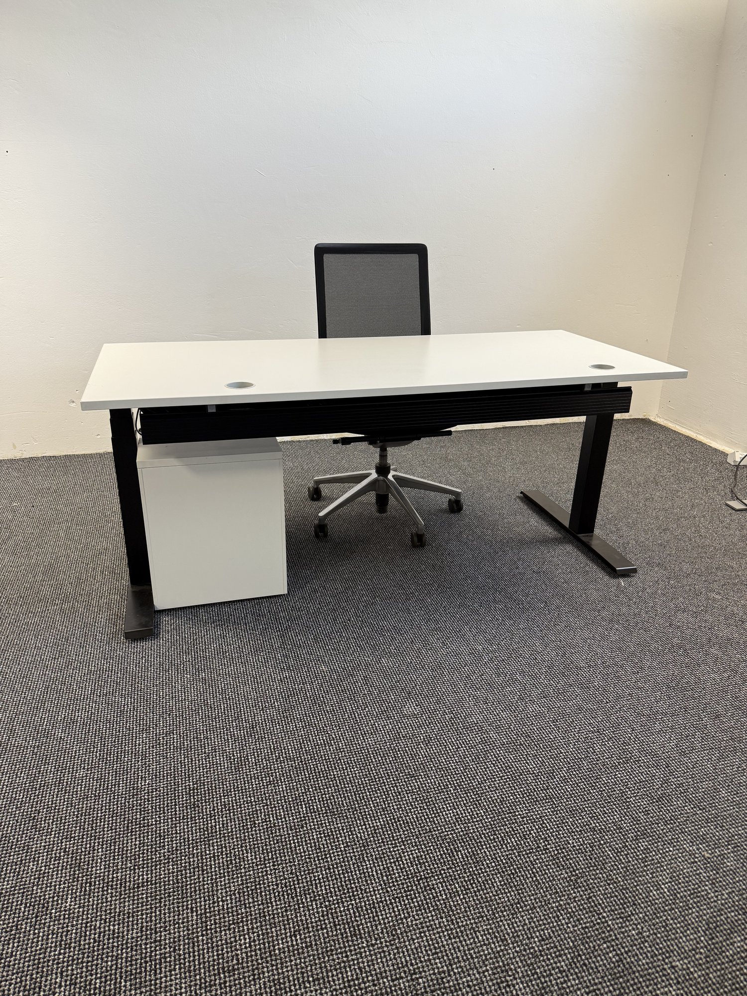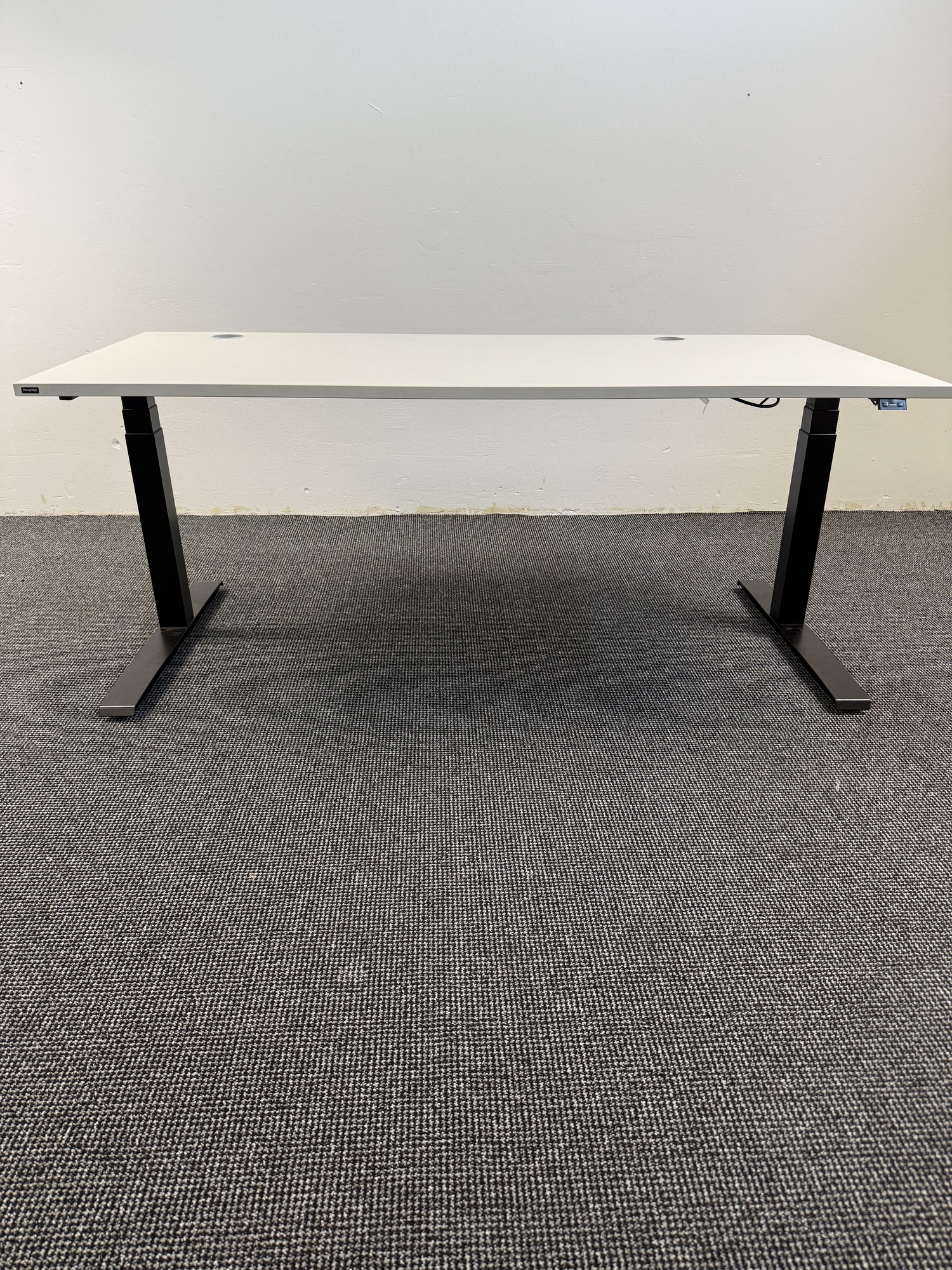 Elektrisch höhenverstellbarer Schreibtisch von Nowy Styl für ergonomische Arbeitsplätze in Büro-, Projekt- und Teamumgebungen. Die großzügige Arbeitsfläche bietet ausreichend Platz für mehrere Monitore und moderne Arbeitsmittel. Merkmale: Hersteller Nowy Styl | Elektrische Höhenverstellung | Tischplatte Weiß | Gestellfarbe Schwarz | Rechteckige Arbeitsfläche | Stabile Konstruktion für professionellen Dauereinsatz | Maße ca. 180 x 80 cm. Zustand: Gebraucht, sehr guter technischer und optischer Zustand, geprüft und voll funktionsfähig, nachhaltige Alternative zur Neuanschaffung.