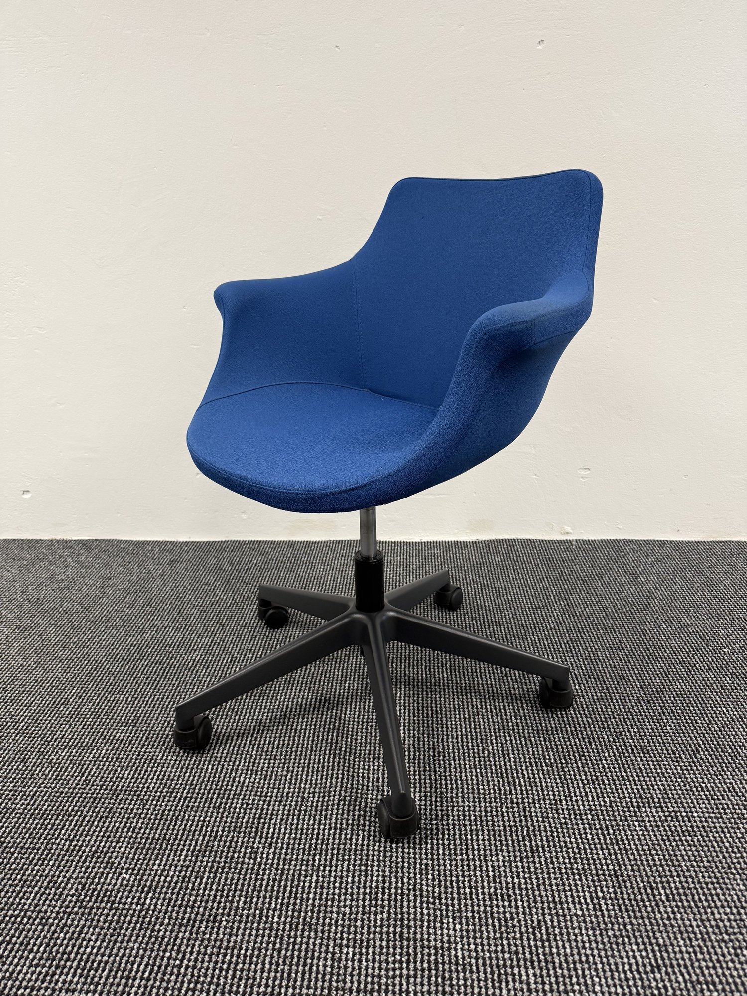 Moderner Besucherstuhl des Herstellers Nowy Styl aus der Produktlinie Kaika. / Der Stuhl eignet sich ideal für Besprechungsräume, Konferenzbereiche, Wartezonen sowie flexible Büro- und Projektumgebungen, in denen Komfort, Beweglichkeit und ein professionelles Erscheinungsbild gefragt sind. / Ausführung als Besucherstuhl mit Drehfunktion und Rollen / ergonomisch geformte Sitzschale / gepolsterte Sitz- und Rückenfläche / Armlehnen integriert / stabiles Gestell / für den mobilen Einsatz im Büro geeignet. / Gebrauchtmöbel in sehr gutem, gepflegtem Zustand mit normaler Nutzungsspur; eine wirtschaftliche und nachhaltige Lösung zur hochwertigen Ausstattung von Arbeits- und Empfangsbereichen.