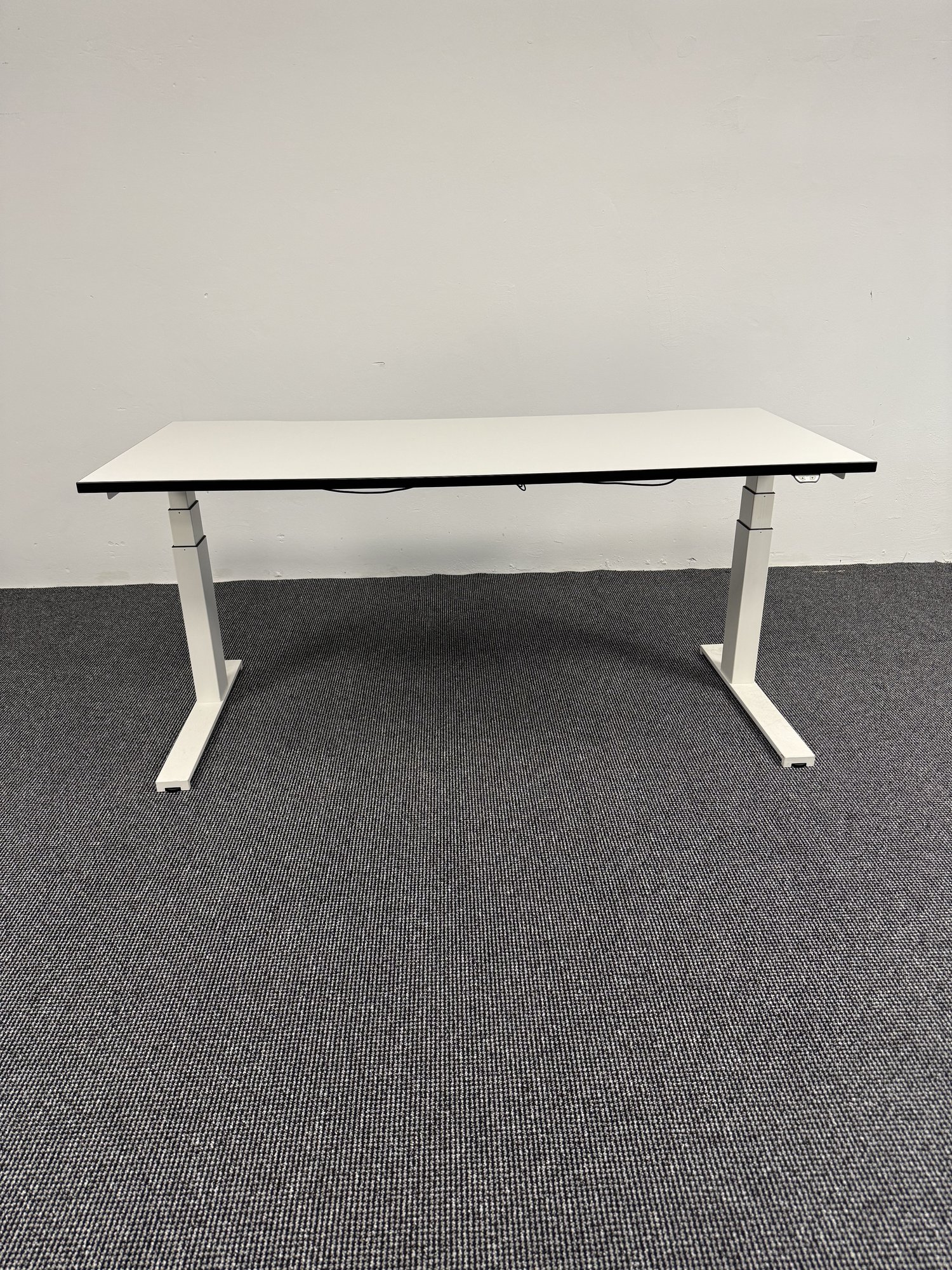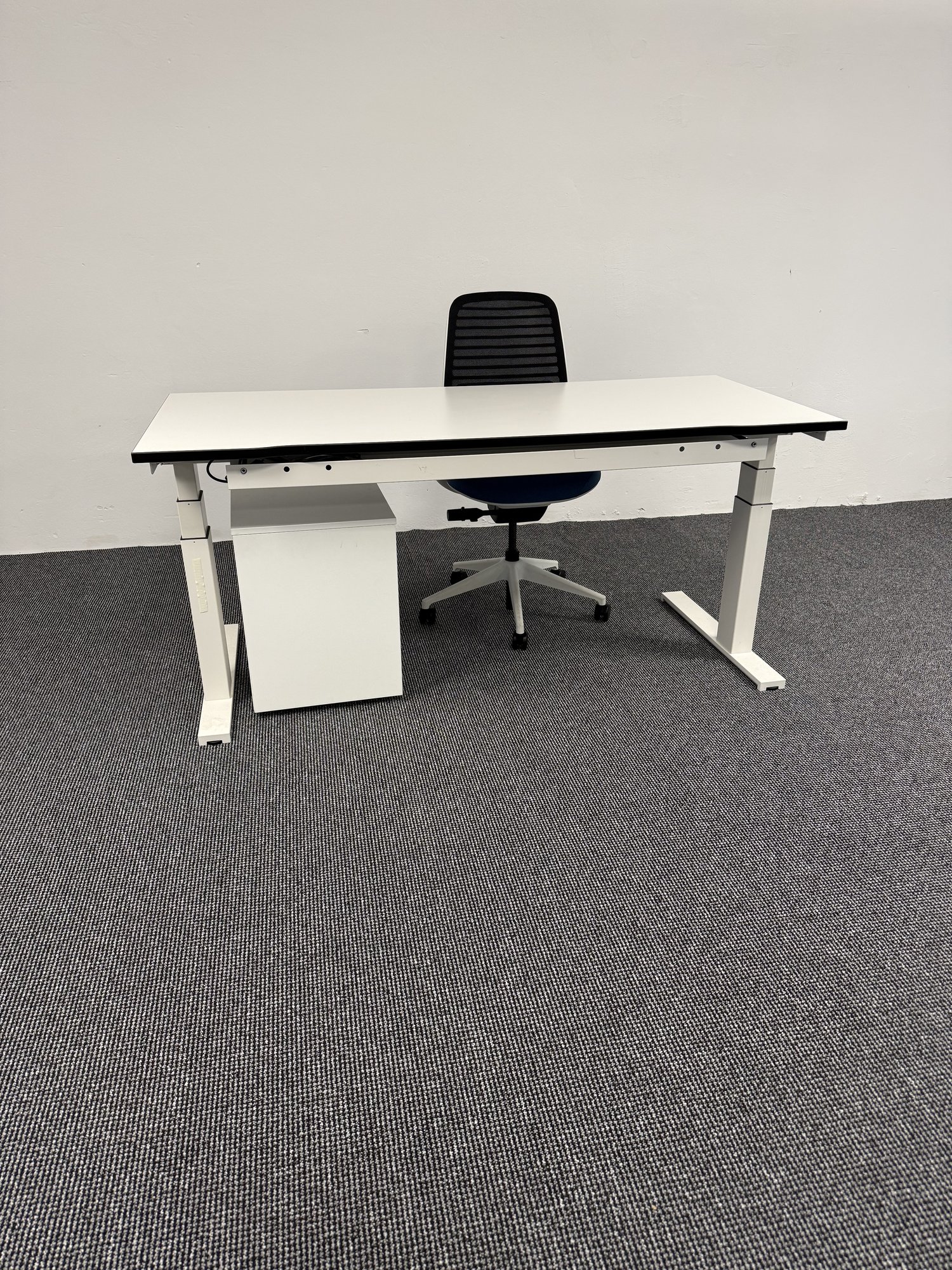 Der Steelcase Basix ist ein elektrisch höhenverstellbarer Schreibtisch für ergonomisches Arbeiten in professionellen Büroumgebungen. Er eignet sich ideal für Einzelarbeitsplätze, Projektbüros, moderne Open-Space-Konzepte sowie für Homeoffice-Lösungen im Unternehmenskontext. Durch die elektrische Höhenverstellung mit Memory-Funktion unterstützt der Tisch einen komfortablen Wechsel zwischen Sitz- und Stehposition und fördert ergonomisches Arbeiten im Büroalltag. • Hersteller: Steelcase • Modell: Basix • Elektrisch höhenverstellbarer Schreibtisch mit Memory-Funktion • Tischmaß ca. 180 × 80 cm • Höhenverstellbereich ca. 68–128 cm • Rechteckige Tischplatte in neutralem, hellem Dekor • Stabiles T-Fuß-Gestell aus Metall • Gestellfarbe: Weiß • Robuste, langlebige Konstruktion für den täglichen Einsatz im Büro. Der Schreibtisch stammt aus professioneller Nutzung und befindet sich in sehr gutem gebrauchten Zustand. Technisch ist er geprüft und voll funktionsfähig. Als gebrauchtes Markenmöbel bietet er eine wirtschaftliche und nachhaltige Alternative zur Neuanschaffung, insbesondere für Unternehmen mit Bedarf an mehreren ergonomischen Arbeitsplätzen.