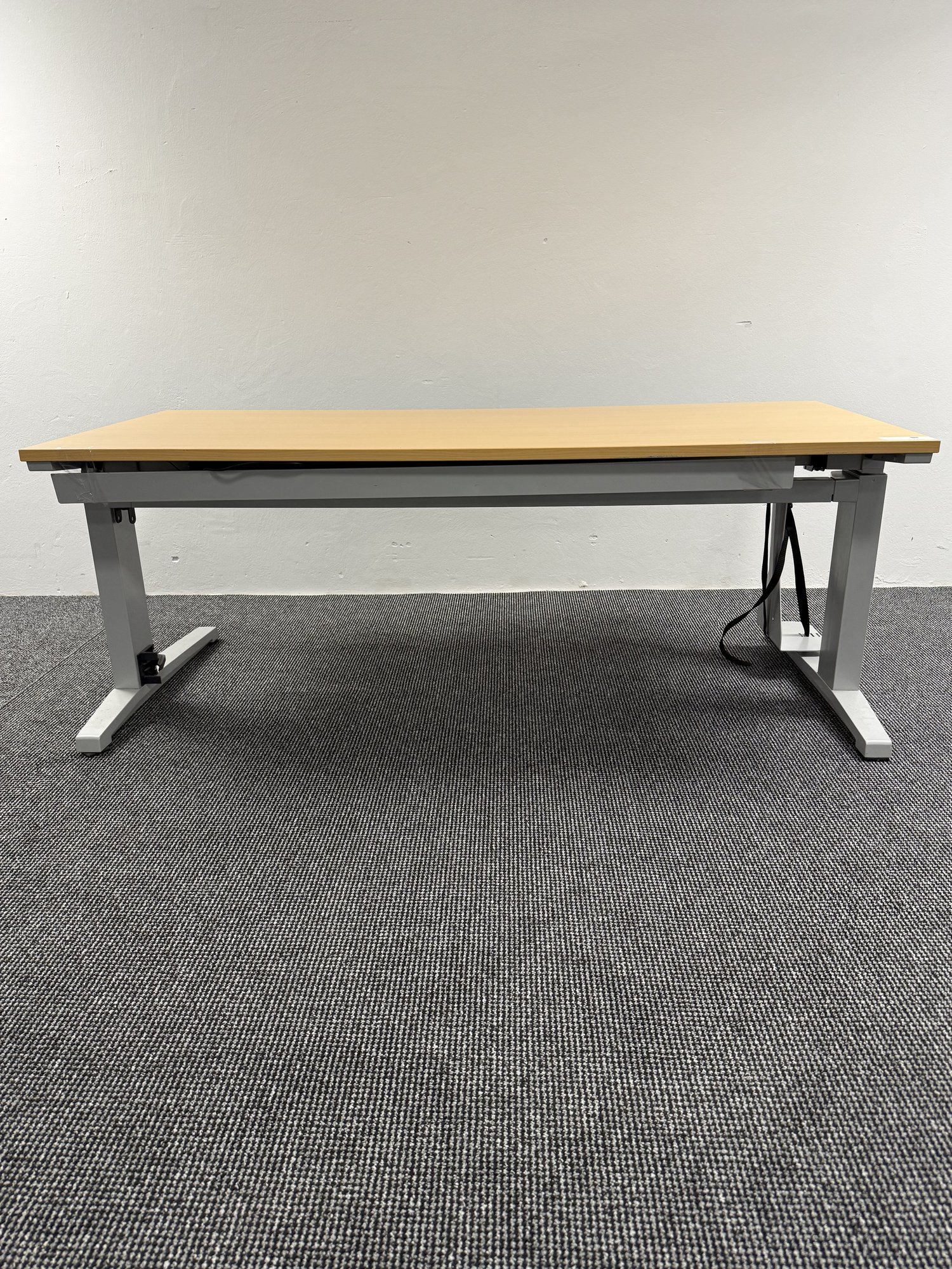 Elektrisch höhenverstellbarer Schreibtisch des Premiumherstellers Steelcase aus der Migration-Serie für ergonomisches Arbeiten in professionellen Büroumgebungen / Geeignet für Einzelarbeitsplätze, Team- und Projektarbeitsplätze sowie hochwertige Homeoffice-Lösungen im Unternehmenskontext / Unterstützt den regelmäßigen Wechsel zwischen Sitz- und Stehposition und fördert gesundes, dynamisches Arbeiten über den gesamten Arbeitstag hinweg / Hersteller: Steelcase / Modell: Migration / Ausführung: elektrisch höhenverstellbarer Schreibtisch / Tischmaß: ca. 180 x 80 cm / Höhenverstellung: elektrisch per Tastensteuerung / Gestell: stabiles T-Fuß-Gestell mit hoher Standfestigkeit / Motorisierung: leistungsstarke, laufruhige Motoren / Tischplatte in Buche hell für eine freundliche, klassische Bürooptik / Konstruktion ausgelegt für den dauerhaften professionellen Einsatz / Zustand: Gebrauchtmöbel in sehr gutem, geprüften und voll funktionsfähigen Zustand / Hochwertige Markenqualität als wirtschaftliche und nachhaltige Alternative zur Neuanschaffung