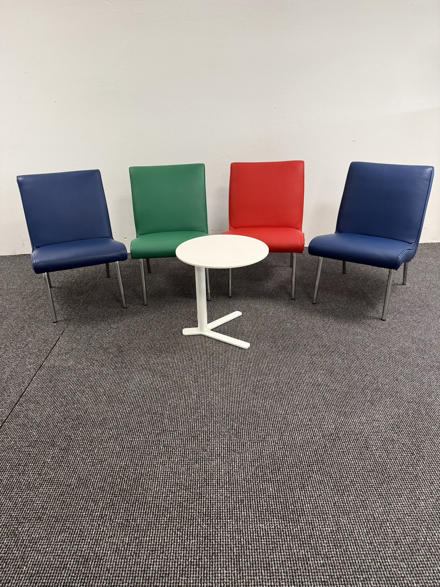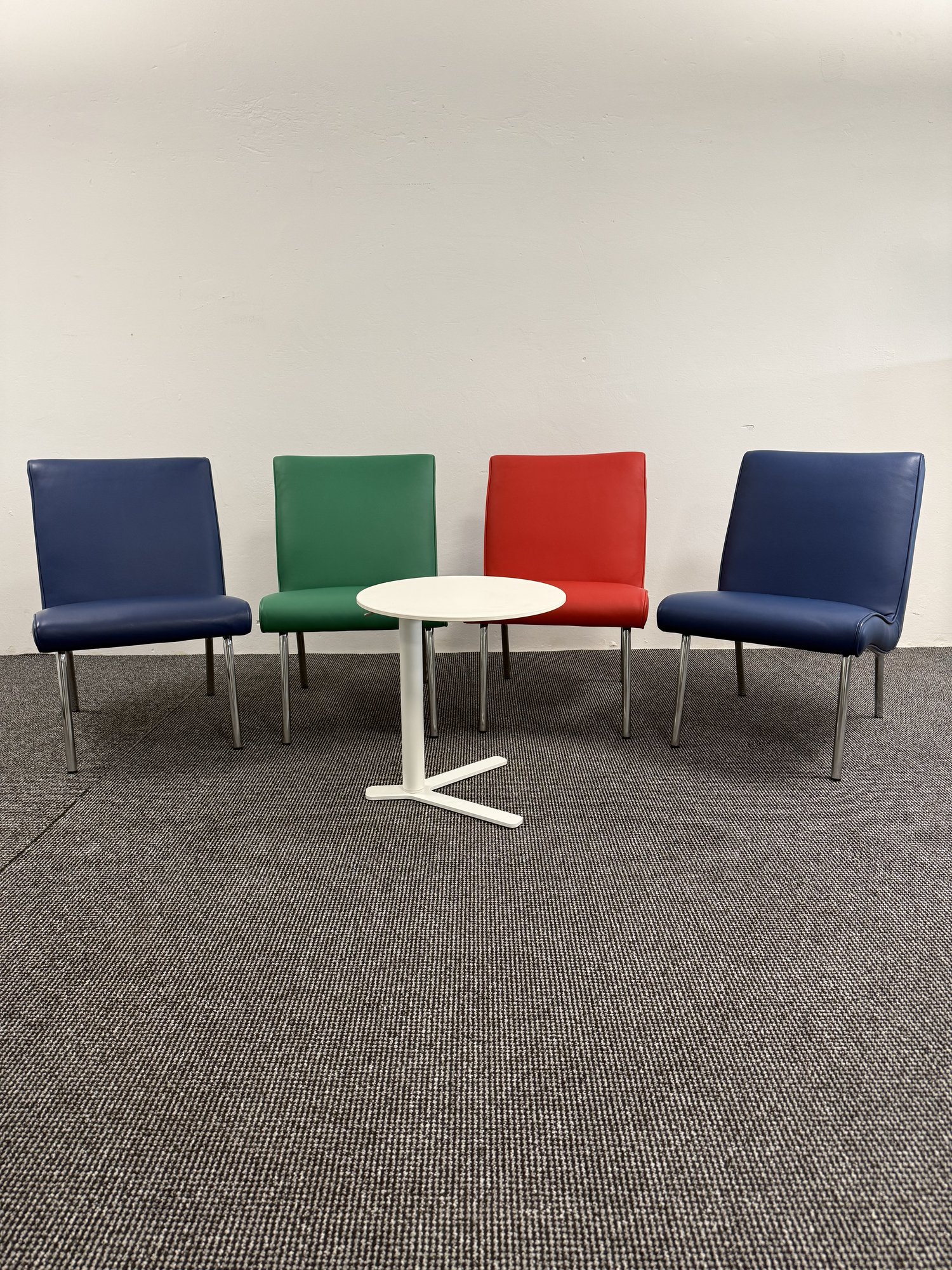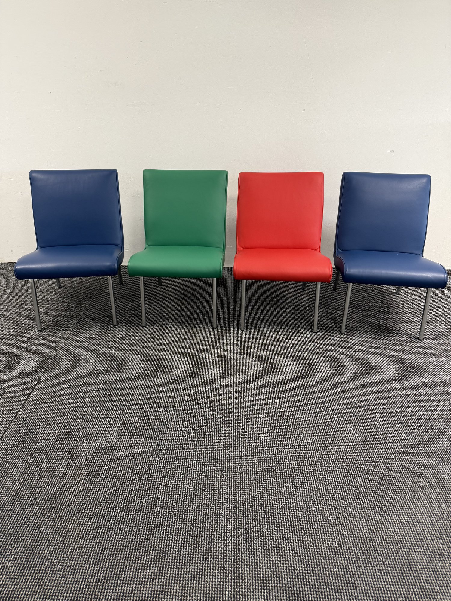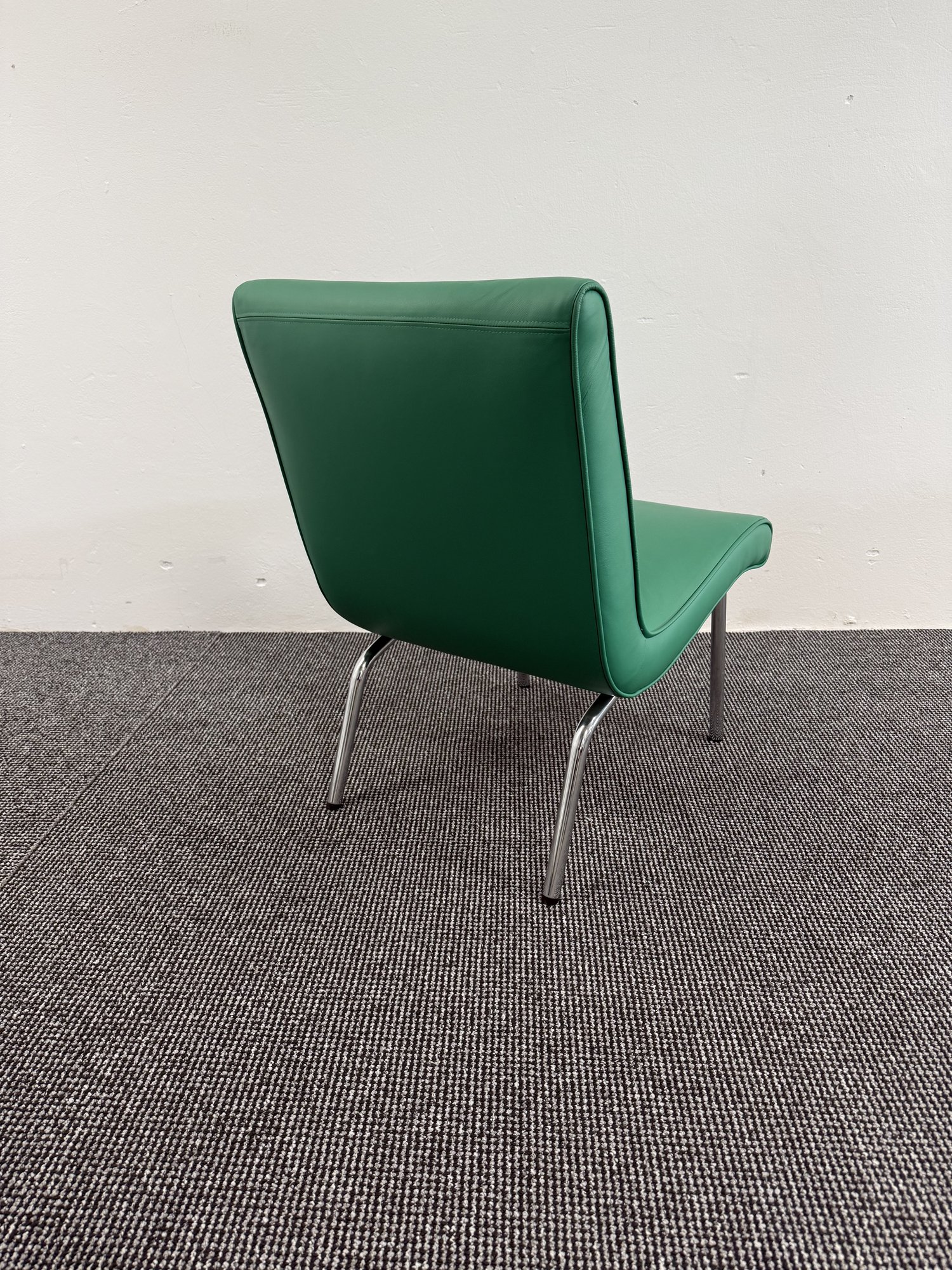 Hochwertiger Lounge- und Besucherstuhl des Premiumherstellers Walter Knoll für repräsentative Büro- und Empfangsbereiche. Der Stuhl eignet sich ideal für Empfangszonen, Wartebereiche, Lounges, Kanzleien, Agenturen oder Showrooms und verbindet zeitloses Design mit hohem Sitzkomfort. Die gepolsterte Sitz- und Rückenfläche mit Lederbezug sorgt für ein angenehmes Sitzgefühl und eine zurückhaltend elegante Optik, die sich harmonisch in professionelle Arbeitsumgebungen einfügt. • Hersteller: Walter Knoll • Typ: Lounge- / Besucherstuhl • Bezug: Leder • Gestell: Metall • Polsterung: Sitz- und Rückenfläche gepolstert • Farbvarianten: Blau, Grün, Rot (siehe Bilder) • Design: zeitlos, hochwertig, repräsentativ • Einsatzbereiche: Empfang, Wartebereich, Lounge, Büro, Kanzlei, Showroom • Zustand: Gebrauchtmöbel aus professionellem Büroumfeld, technisch und funktional einwandfrei mit üblichen, leichten Gebrauchsspuren. Nachhaltige Wiederverwendung hochwertiger Markenmöbel als wirtschaftliche Alternative zur Neuanschaffung.